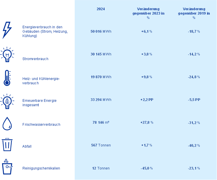 Anmerkung: Weitere Informationen zu diesen Entwicklungen finden sich in Kapitel 6 – Umweltaspekte und -auswirkungen der EZB-Aktivitäten. Einzelheiten zu den Umweltdaten pro Arbeitsplatz im Jahr 2024 sind Kapitel 7 – Technische Informationen zu entnehmen.