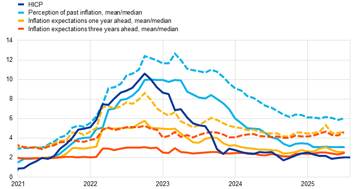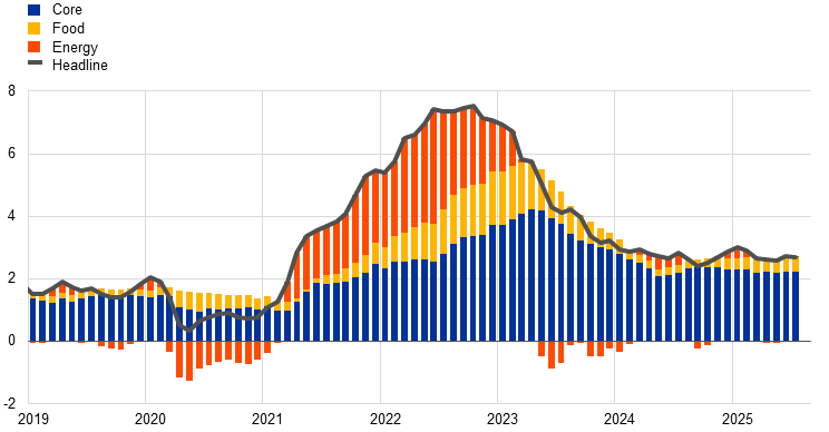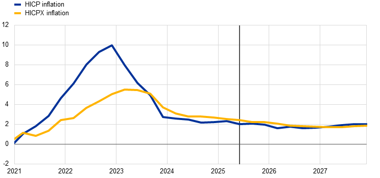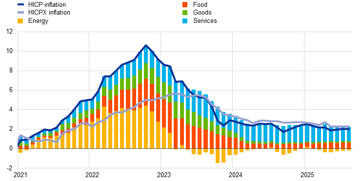 The September 2025 ECB staff macroeconomic projections for the euro area show a picture of inflation similar to that projected in June 2025 and foresee headline inflation averaging 2.1% in 2025, 1.7% in 2026 and 1.9% in 2027.[4]