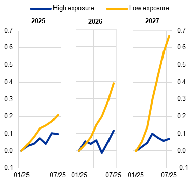 This is also supported by the July 2025 SAFE survey, where firms with supply chain issues report, after controlling for size, country and sector, an 8 per cent and a 9 per cent lower likelihood of expecting improvements in the availability of credit lines and bank loans, respectively, over the next three months compared with firms reporting no supply chain implications from tariffs