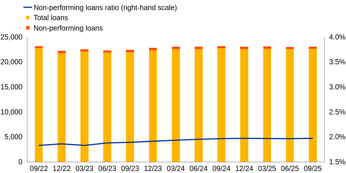 - During the same period, EU credit institutions’ aggregate non-performing loans ratio[1] increased by 0.01 percentage points year on year to stand at 1.97% in September 2025
