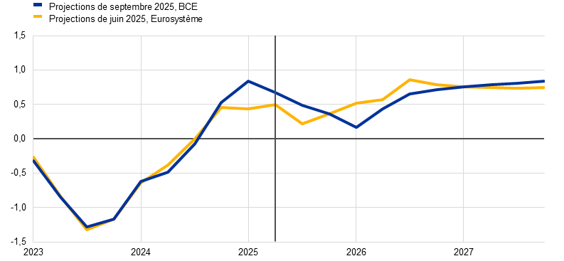 a) Projections de septembre 2025 | b) Révisions par rapport aux projections de juin 2025 |