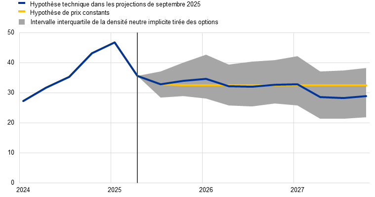 La date d’arrêté des hypothèses techniques était le 15 août 2025. Les projections macroéconomiques pour l’environnement international et la zone euro ont été finalisées le 28 août 2025.