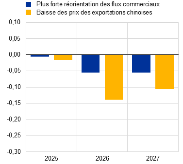 Effets sur les exportations d’une plus forte réorientation des flux commerciaux et d’une baisse des prix des exportations chinoises